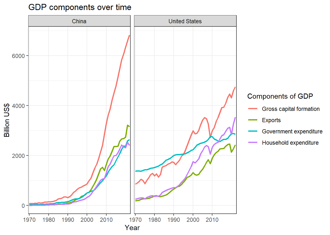 We will examine GDP data from the UN’s National Accounts Main Aggregates Database, covering all countries from 1970 to now. We’ll analyze changes in GDP and its components over time and assess the usefulness of GDP per capita as a well-being measure.