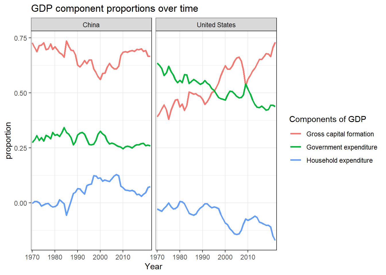 Subset Data: It selects rows from long_UN where IndicatorName is “Final consumption expenditure” and stores the result in cons.